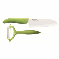 Kyocera Green 5.5" Santoku Knife & Y-Peeler Set