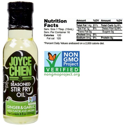 Replace your bland everyday oil and dramatically improve the taste and aroma of any stir fried or grilled vegetables, seafood, or meat. Joyce Chen Garlic & Ginger Seasoned Stir Fry Oil is perfect for conveniently creating delicious Chinese recipes. By infusing essential oils of garlic and ginger into 100% Canola Oil, they create a product that is healthy, well balanced and flavorful, without being over powering. Kosher certified as pure and wholesome, Joyce Chen's stir fry oil is trans fat free, and cholesterol free. Use for stir frying (about 2 TBS.) and in your favorite recipes instead of regular cooking oils. (Do not overheat). Visit www.JoyceChenFoods.com for Joyce Chen's recipes and to learn how she helped pioneer Chinese cuisine in the U.S.