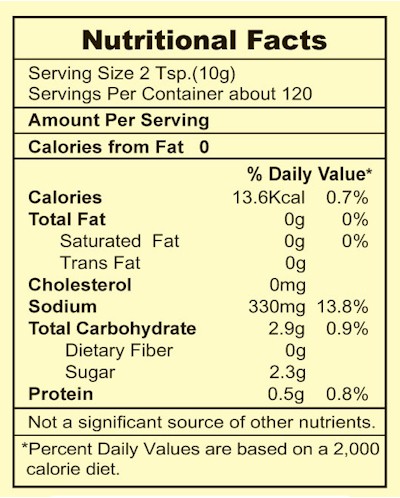 Ingredients: Soy Sauce (Water, Soybeans, Wheat and Salt), corn starch, sugar, Sodium mushroom flavor, Benzoate (less than 0.1% as food preservative).