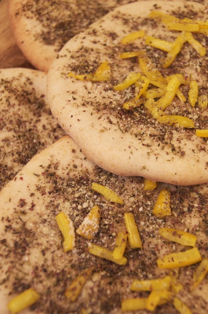 the Za'atar to make a simple flatbread, cut it into thin slices and